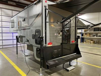 Each Backpack Edition truck camper by Palomino is constructed with high-density block foam insulation, an alpha super flex membrane roof, and Azdel substrate for added durability. You will also love the white or grey hi-gloss exterior fiberglass that is eye-catching and easy to keep clean. Inside, you'll find solid surface countertops, white cabinets, an undermount sink, and more comforts. The 400-watts of solar power and 100 Amp lithium battery will keep you powered up, and the electric jacks will have you set up at camp in no-time!
