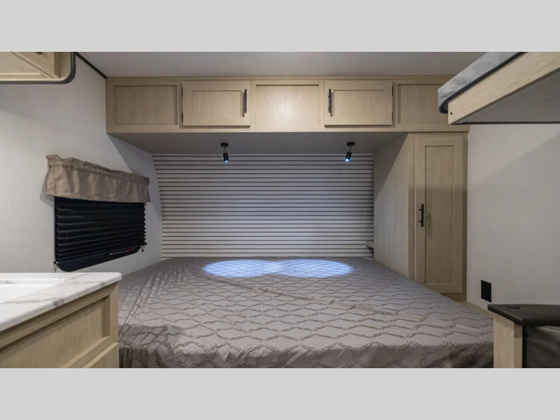 Each model includes four stabilizer jacks that will help secure your unit once you've made to the campground, and you might even want to add the optional power tongue jack in place of the manual jack for even more convenience. Inside, the pocket-bored and screwed cabinets add comfort and durability for everyday use, and the Bluetooth portable speaker will let you take your tunes with you!